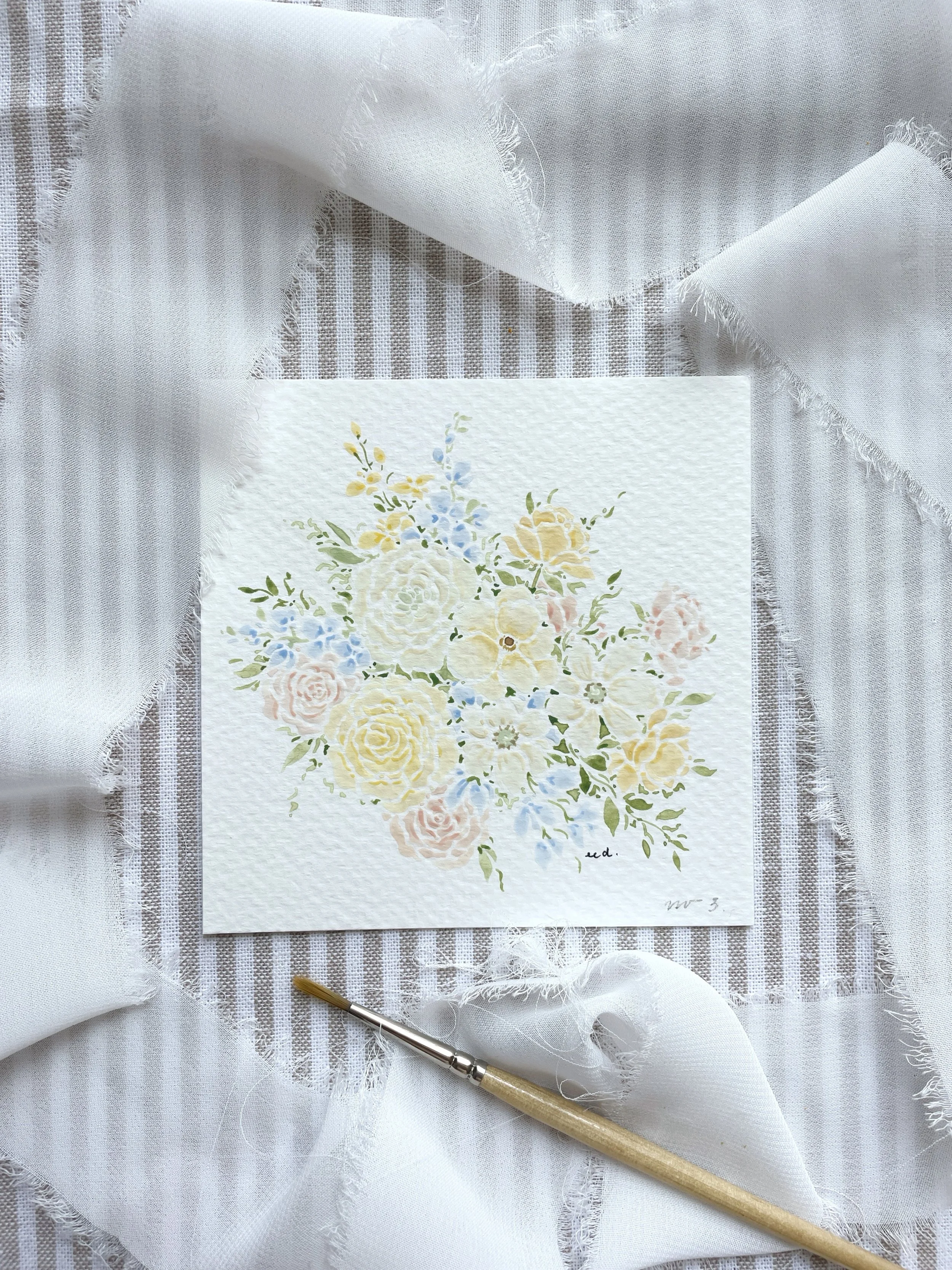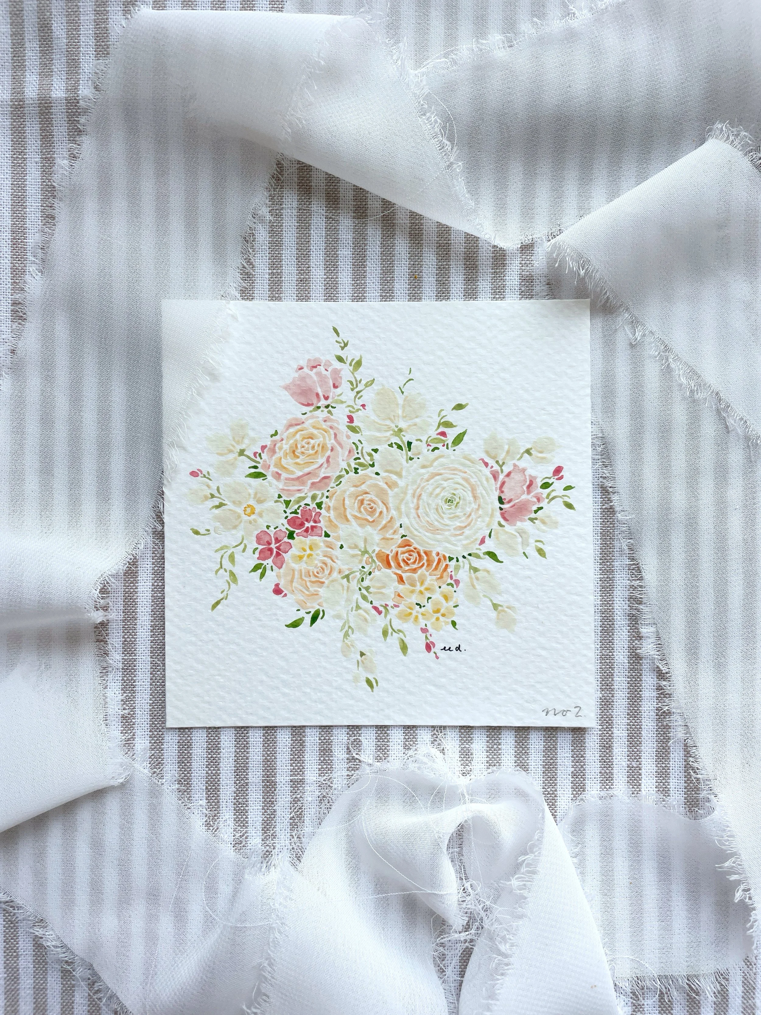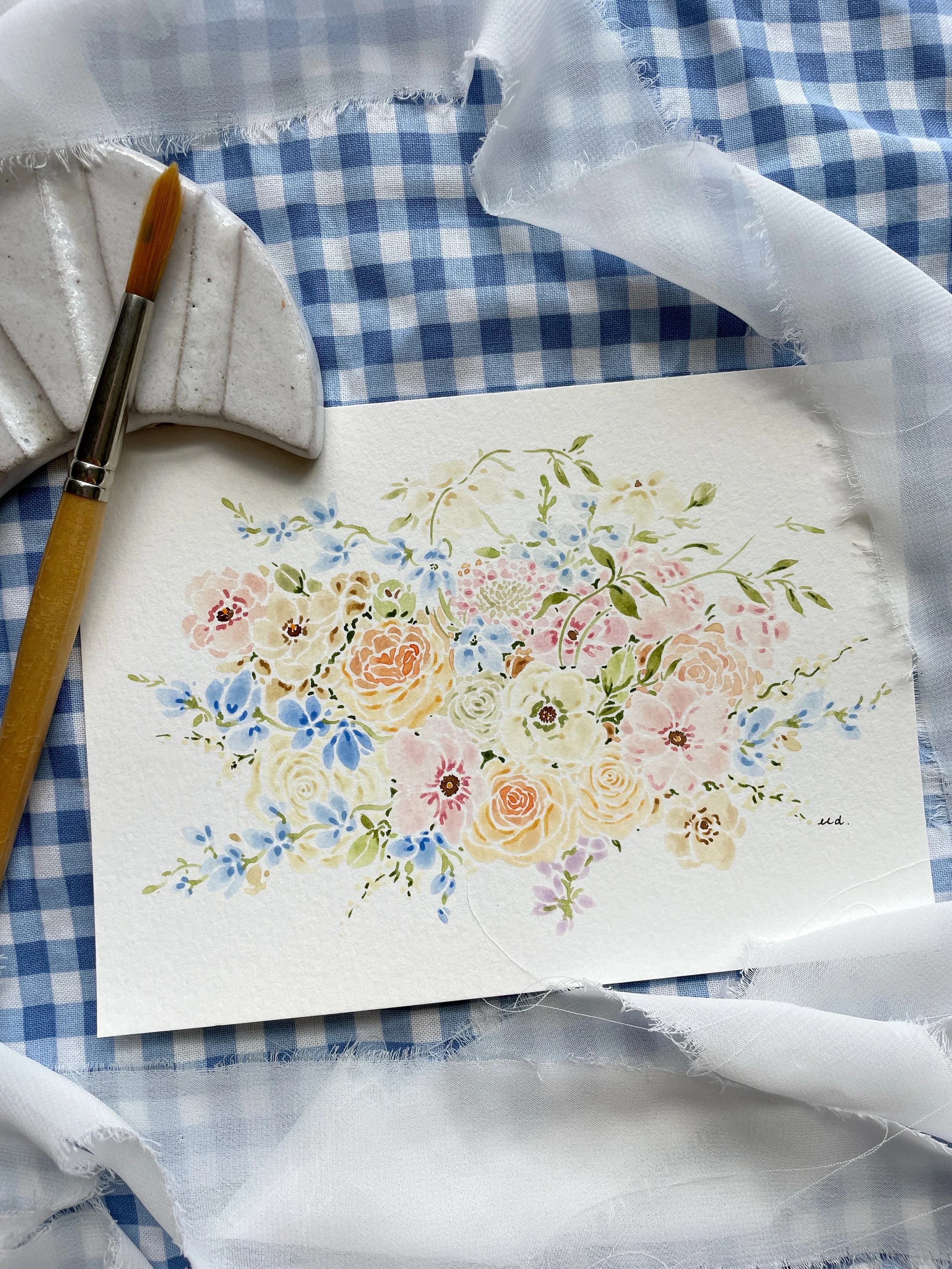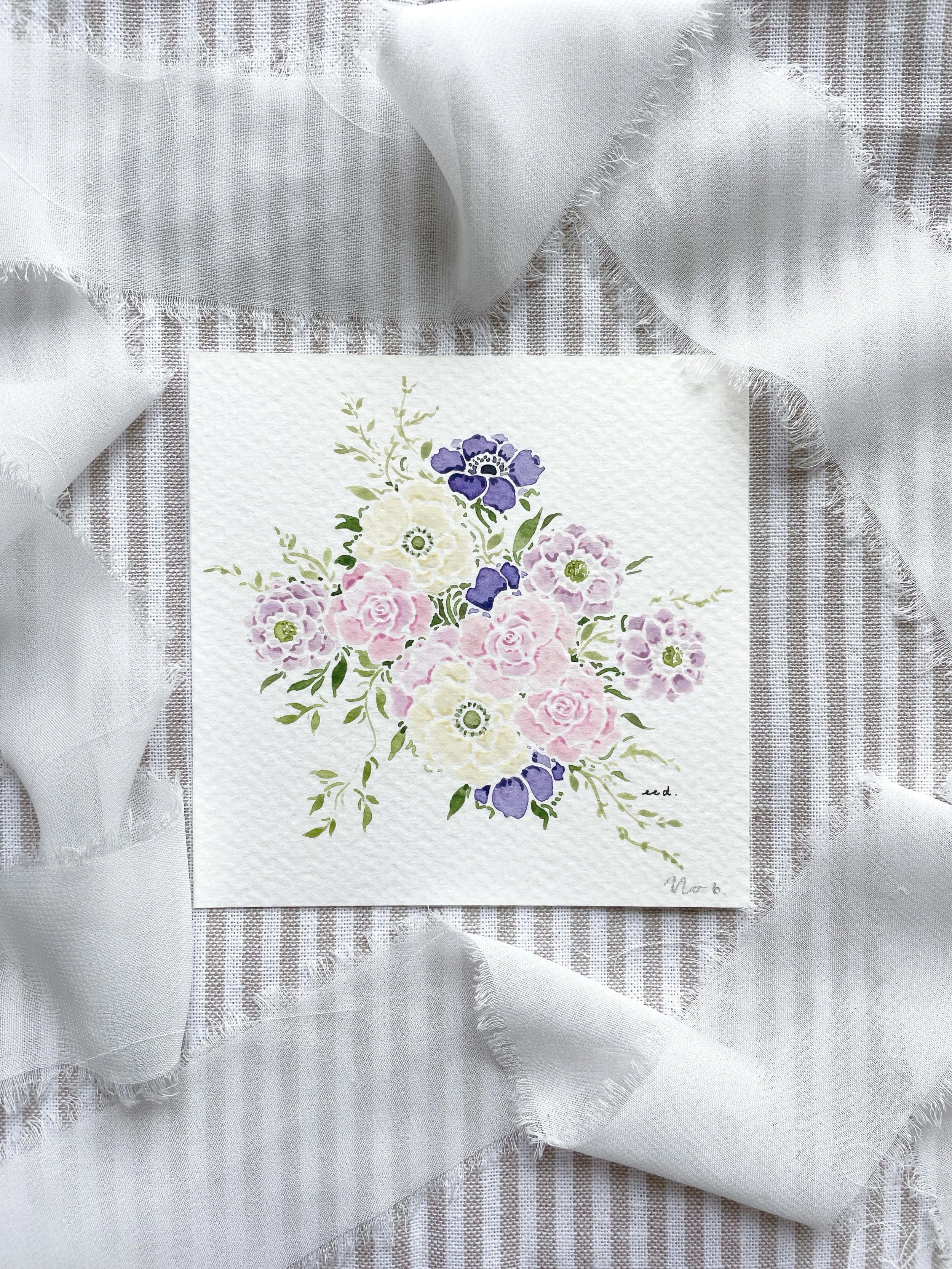 Categories: Select a Category Wedding Bouquet Paintings Prints Original Artwork Wedding Bouquet Paintings | Prints | Original Artwork | Wedding Bouquet Painting (5x7) $150.00 Sold Out Wedding Bouquet Painting (8x10) $200.00 Sold Out Wedding Bouquet Painting (10x12) $250.00 Sold Out Wedding Bouquet Painting (11x14) $300.00 Sold Out Framing Add-On (Original Paintings Only) $75.00 ORIGINAL Watercolor Painting No. 1 $95.00 Sold Out ORIGINAL Watercolor Painting No. 2 $95.00 ORIGINAL Watercolor Painting No. 3 $95.00 ORIGINAL Watercolor Painting No. 4 $95.00 ORIGINAL Watercolor Painting No. 5 $95.00